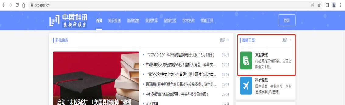 1)原“中国科讯”平台升级为“中国科讯-慧科研主服务”平台:http://stpaper.cn,点击:智能工具-文献获取: